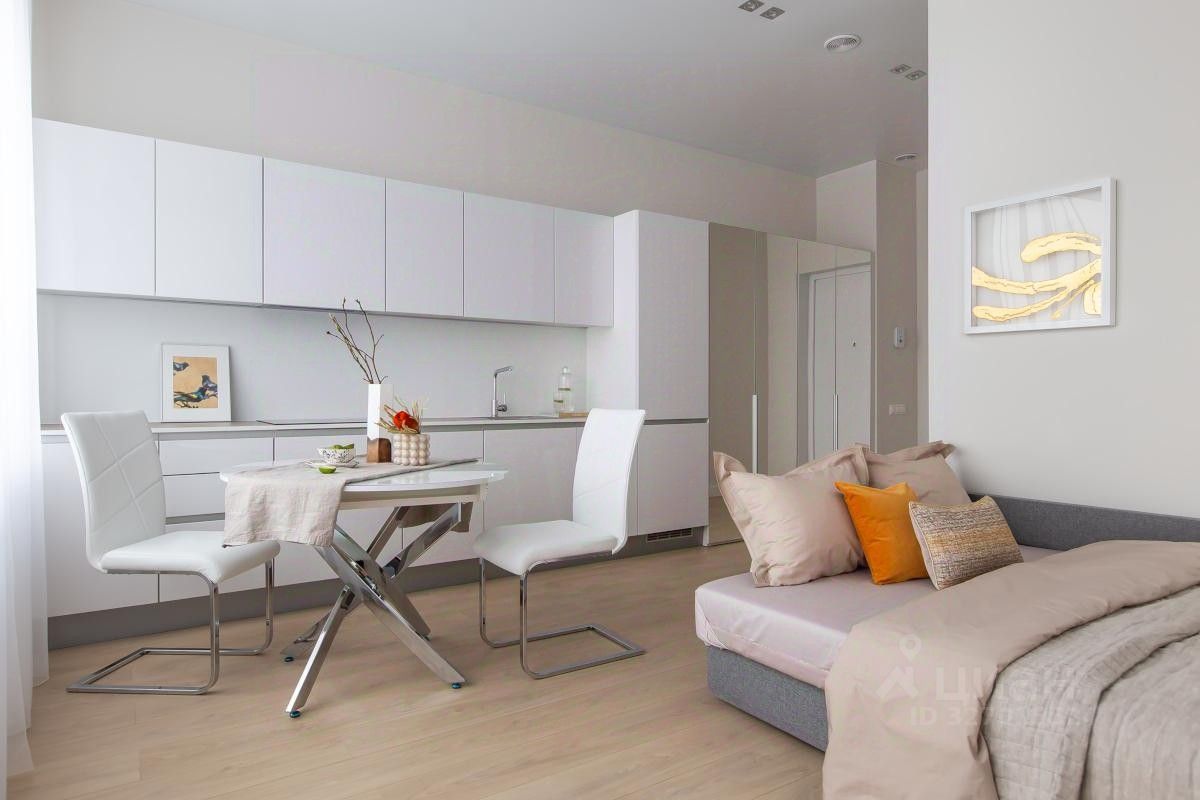 Доступно заселение на следующий рабочий день после обращения! Апартамент доступен к просмотру и бронированию! Предлагается в долгосрочную аренду светлая студия в арендном доме ''Символ'' от ДОМ.РФ. 223 Доступна рассрочка оплаты депозита на 3 месяца! Без комиссии. Разрешено проживание с животными! Апартамент с индивидуальным интерьерным решением в современном стиле, качественной отделкой, мебелью и техникой для жизни от ведущих брендов (Hotpoint Ariston): - Встраиваемая бытовая техника, - Стиральная машина, - Электрическая варочная панель, - Холодильник, - Кондиционер, - Плазменный телевизор В квартире размещён полный комплект необходимой мебели: - современный кухонный гарнитур, - обеденный стол и 2 стула, - тумба под телевизор, - двуспальный раскладной диван, - вместительный шкаф, В квартире один совмещенный санузел с душевой кабиной, раковиной и зеркалом с подсветкой и стиральной машиной. Услуги консьерж-сервиса 24/7 включены в арендную плату (прием корреспонденции, заявок на ремонт, выдача гостевых пропусков, и т.д.), дополнительно можно заказать: доставку воды, уборку, стирку, глажку, уход за животными и многое другое. Разрешено проживание с животными!