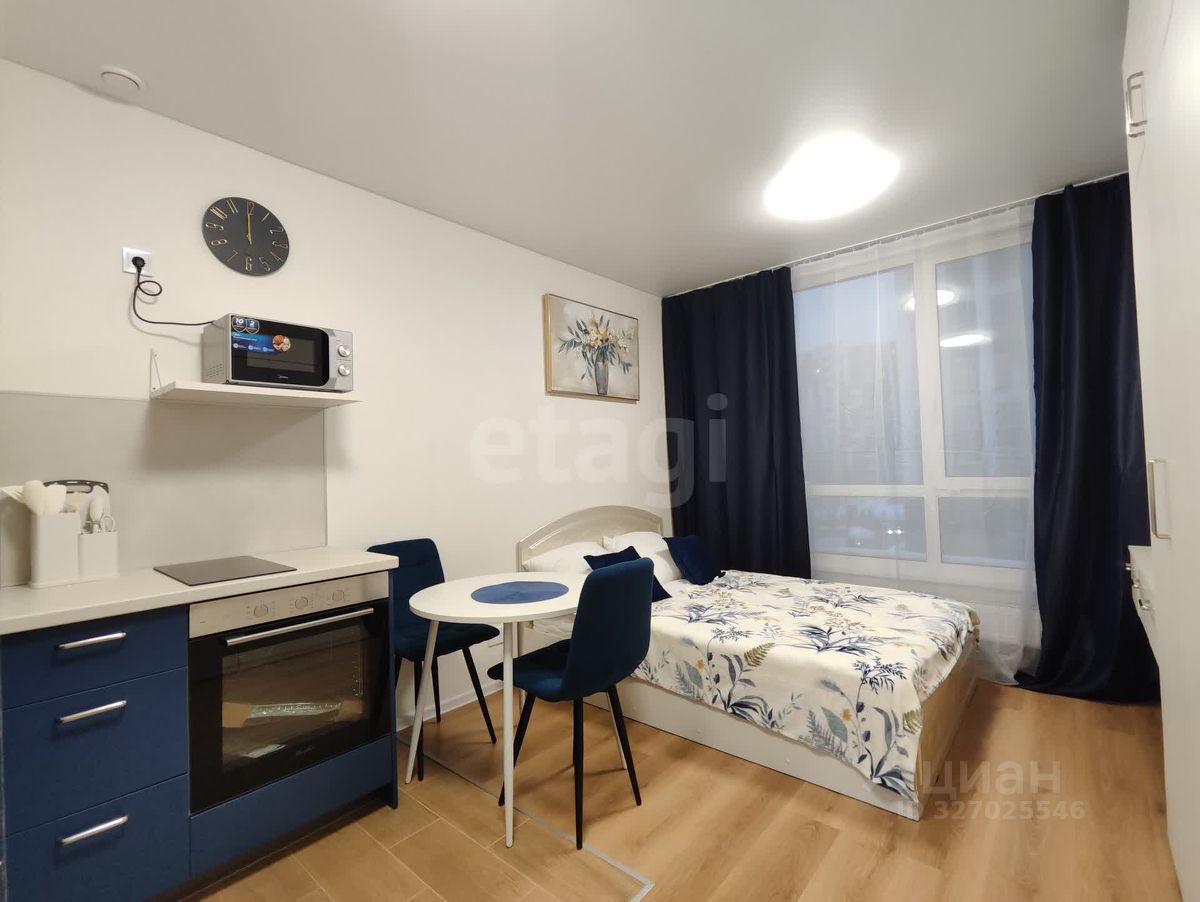 O квартире Квартира укомплектована всем необходимым для комфортной жизни — уютная, просторная: — **Кухня** — современный гарнитур, современная техника, варочная панель, духовой шкаф, холодильник, чайник. Здесь удобно готовить, есть обеденный стол и стулья. — **Санузел** — чистый и аккуратный. Душевая зона, зеркало, стиральная машина — всё, что нужно для удобства. — **Просторный шкаф** — для хранения вещей. — **Рабочее место** — с местом для хранения — ** Удобная кровать** — для комфортного сна — **Интернет** — по желанию арендатора, подключить можно быстро.