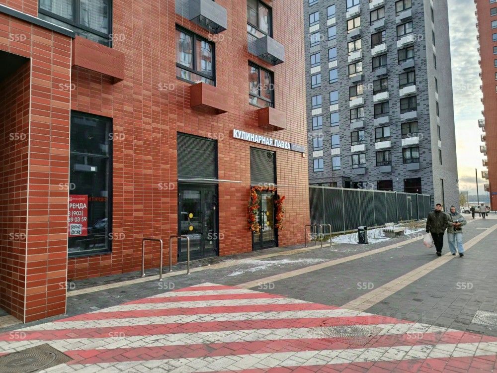 Помещение на въезде в ЖК. Отдельный вход с улицы. Два больших витринных окна по фасаду. Зальная планировка. Высота потолков 4,5 метра. Электрическая мощность 10 кВт. Парковка вдоль здания. Возможность размещения вывески на фасаде.