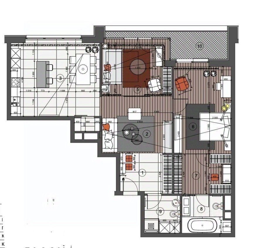 Апартаменты с современным дизайнерским ремонтом, с 2 спальнями и террасой.