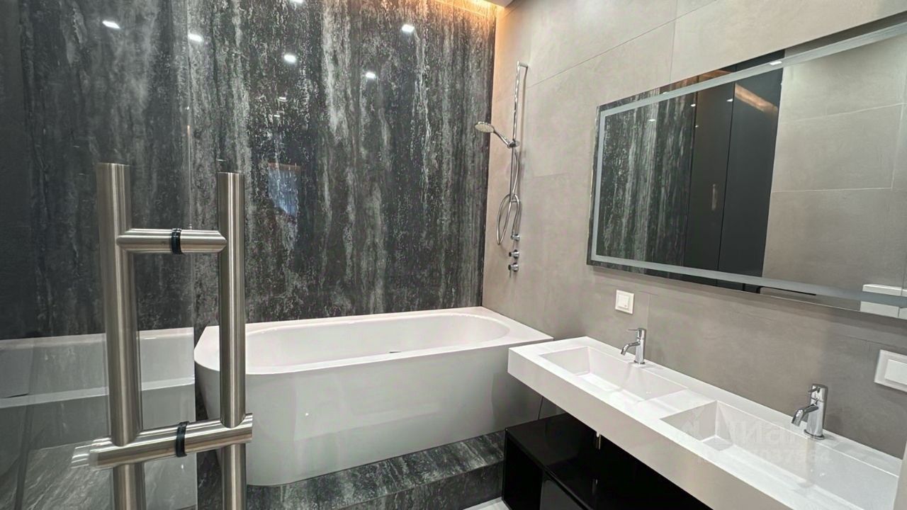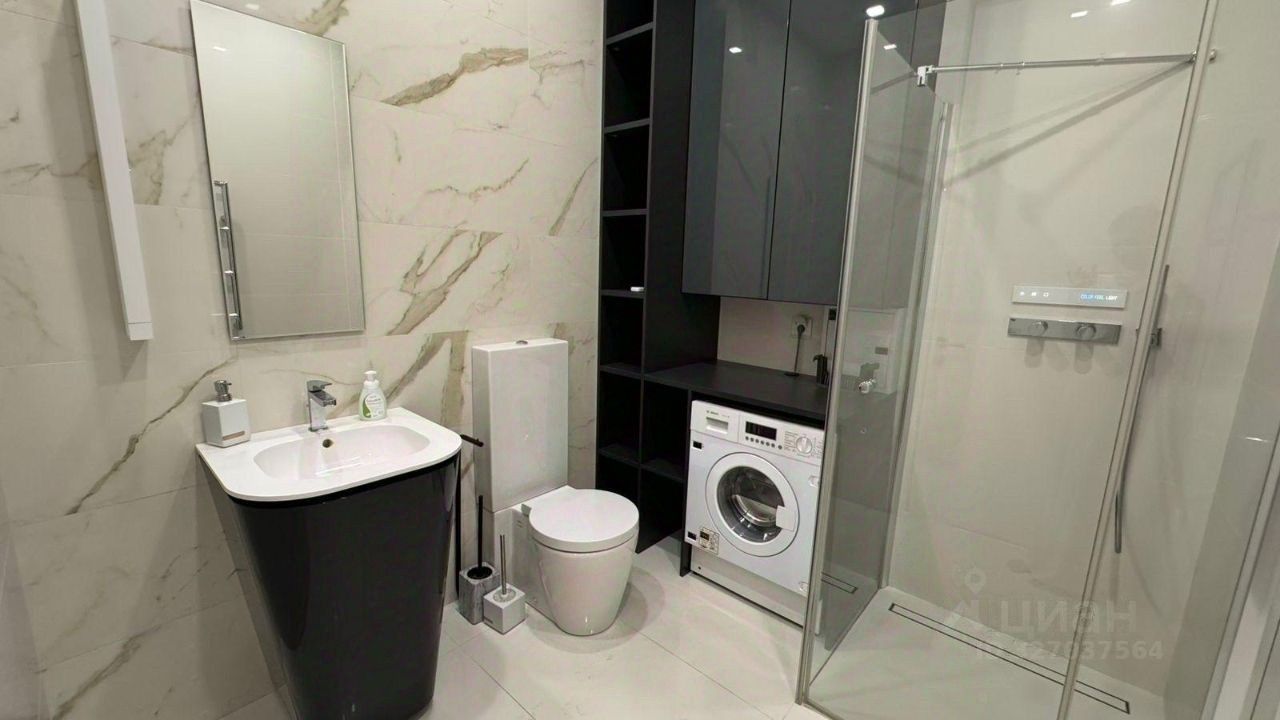 Функциональная планировка: просторная кухня, гостиная, мастер-спальня с гардеробной и санузлом, вторая спальня, которую можно использовать как гостевую или детскую комнату, гостевой санузел с душевой кабиной. Апартаменты полностью меблированы и оснащены всем необходимым. Панорамное остекление в пол.