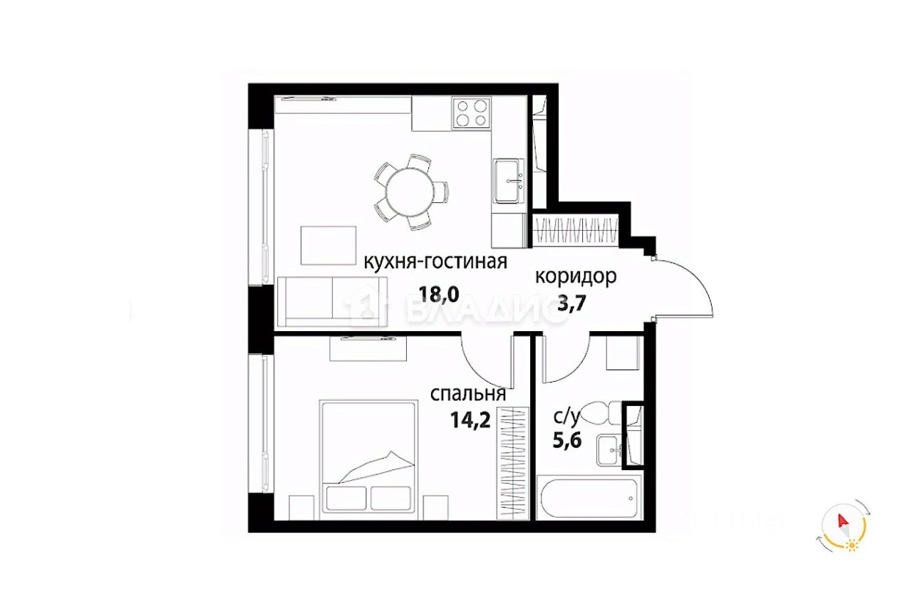 1-комнатная квартира в ЖК Символ, корпус Вдохновение. Площадь - 41.5 квм. Кухня-гостиная - 18 квм, спальня - 14.2 квм. Жилой комплекс Символ состоит из 6 очередей строительства и включает корпуса разной этажности: от 3 до 27 этажей. Дома строятся по кирпично-монолитной технологии с вентилируемыми фасадами, облицованными алюминиевыми панелями и фасадной плиткой. Проект создан архитектурной мастерской ATRIUM по дизайн-коду британских бюро LDA Design и UHA London. В архитектуре гармонично сочетаются темные и светлые оттенки, плавные бионические линии и строгая геометрия простых форм. Во всех корпусах спроектированы двусветные парадные лобби с высокими потолками до 9 метров, авторским дизайном, стойкой ресепшн с консьержем, зонами ожидания с мягкой мебелью, цифровыми почтовыми ящиками и постаматами для посылок. Кроме того, во входных группах есть комнаты для колясок и мойки лап домашних питомцев и гостевые санузлы. Лифтовые холлы оснащены премиальными лифтами с индивидуальным дизайном кабин. В квартирах спроектированы увеличенные окна высотой от 2,1 метра, из которых открывается вид на центр города и парк. На территории жилого комплекса есть собственный парк ''Зеленая река'' с беседками и перголами для тихого отдыха, игровыми и спортивными площадками, беговыми и велодорожками, памп-треками, сухим фонтаном и ярмарочной площадью. На первых этажах корпусов находятся детские клубы, фитнес-румы, супермаркеты, пекарни и другие необходимые сервисы. В пешей доступности от комплекса расположены детские сады и лицей при МГТУ имени Баумана. Под каждым домом предусмотрены подземный паркинг и помещения для хранения сезонных и габаритных вещей. Жилой комплекс расположен в одном из старейших исторических районов Москвы — Лефортово. К территории комплекса примыкают шоссе Энтузиастов и ТТК. Метро ''Площадь Ильича'' в 15 минутах пешком.