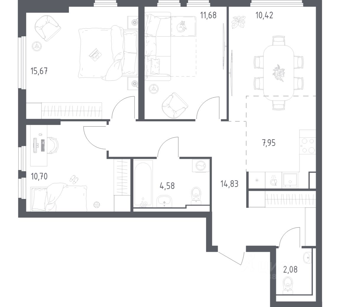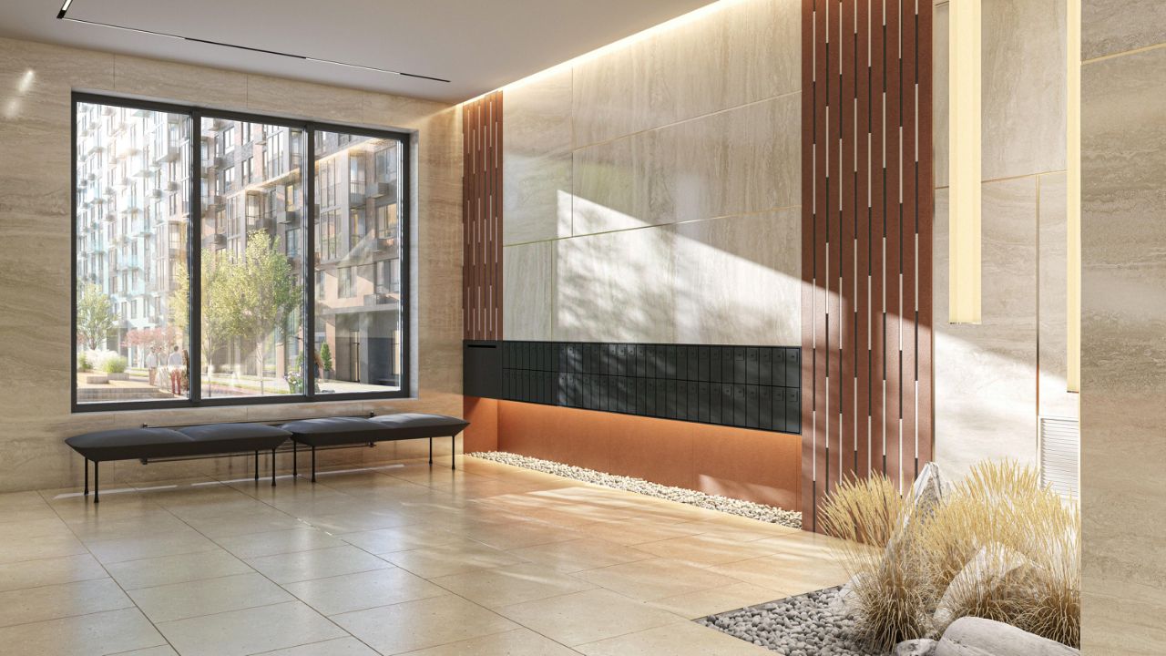 Застройщик сдает квартиры с отделкой в нескольких вариантах: предчистовая, готовая, улучшенная или вариант без нее. Последний подойдет тем, кто хочет создать свой уникальный интерьер и ничем себя не ограничивать. А если не хочется тратить время на ремонт, можно выбрать опцию — с отделкой. Перед тем как отдать ключи, застройщик установит натяжные потолки, поклеит обои под покраску, положит ламинат светлых тонов, а в санузлах — керамическую плитку и керамогранит.