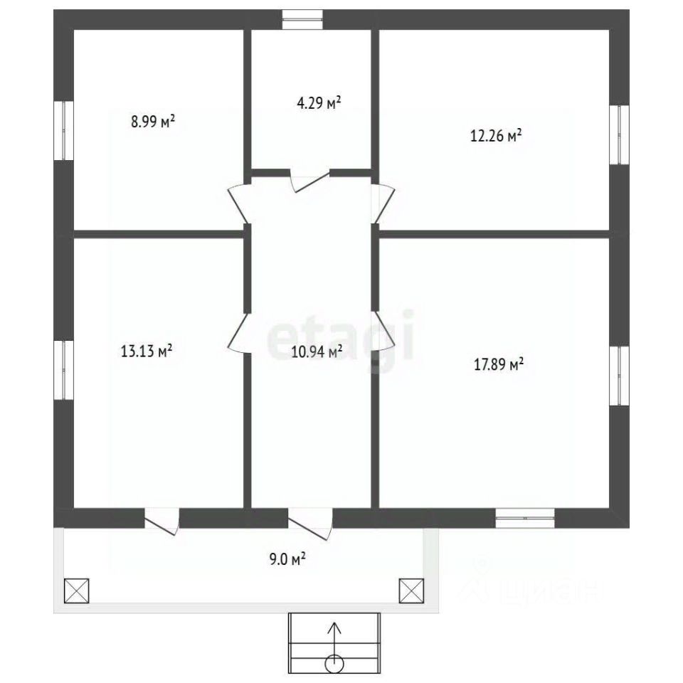 Планировка дома включает четыре изолированные комнаты, что обеспечивает комфортное размещение семьи с возможностью организации рабочего кабинета или гостевой зоны. Помещения светлые, с рациональным использованием пространства.