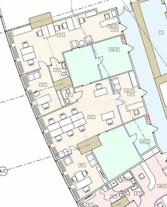 В помещении выполнена качественная офисная отделка, смешанная планировка.