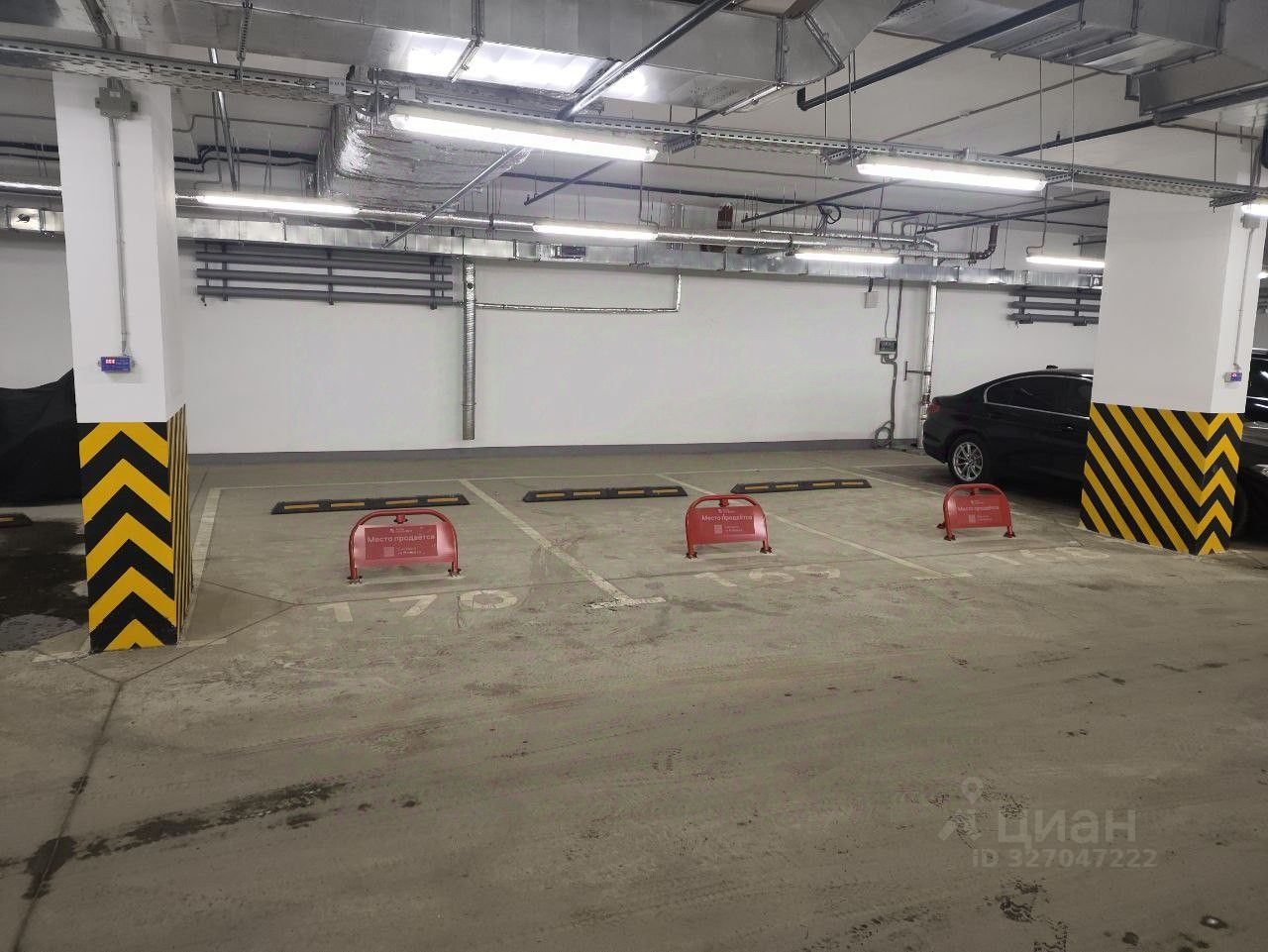 Машино-место 169 на -1 этаже. Теплый паркинг с хорошим освещением.