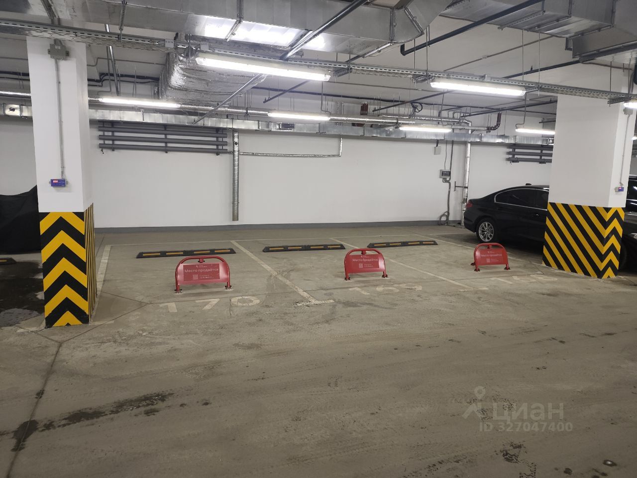 Машино-место 168 на -1 этаже. Теплый паркинг с хорошим освещением.