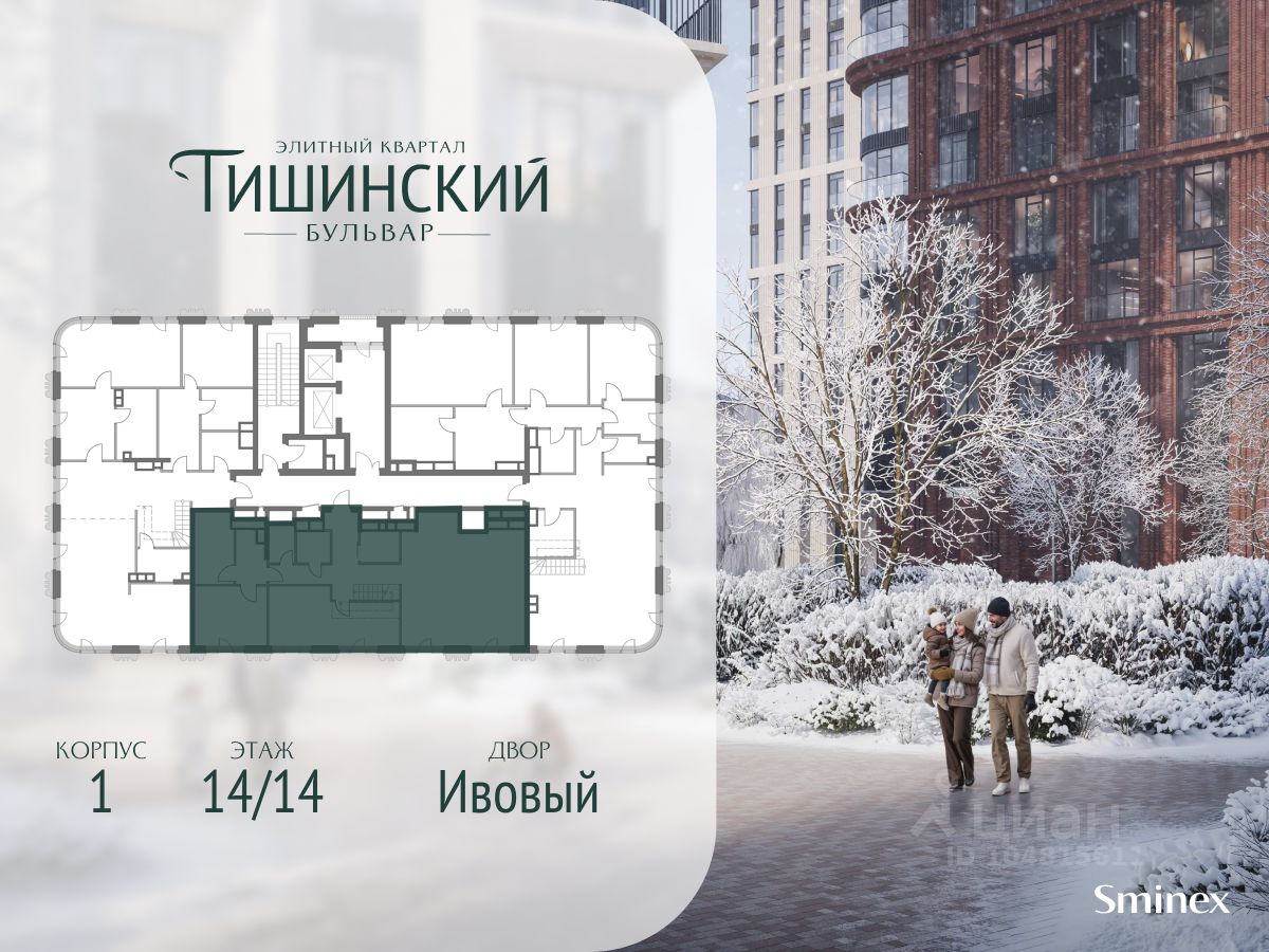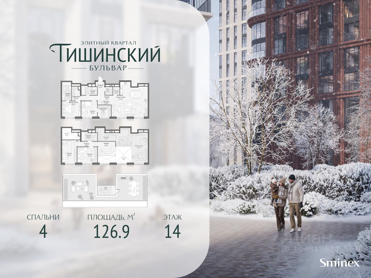 В продаже 4-комнатная квартира квартира в элитном квартале ''Тишинский бульвар''. Общая площадь квартиры - 126.90 кв.м. Этаж 14 из 14. Корпус К4С1.