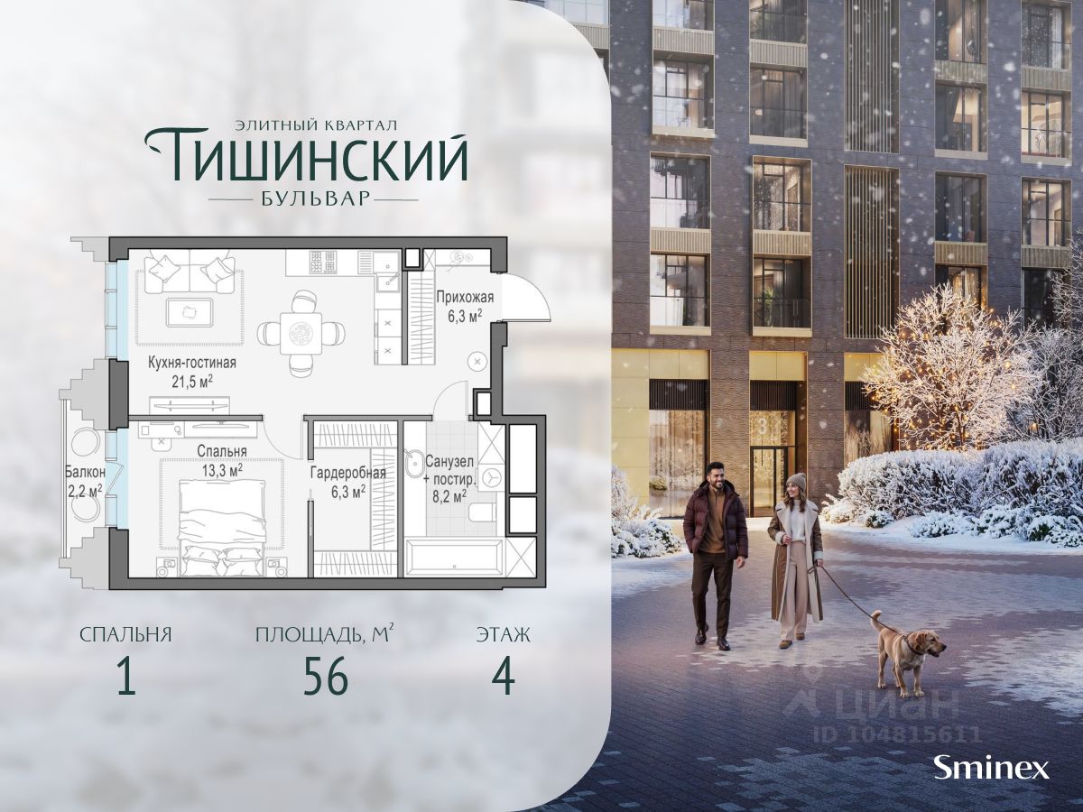 В продаже 1-комнатная квартира квартира в элитном квартале ''Тишинский бульвар''. Общая площадь квартиры - 56.00 кв.м. Этаж 4 из 14. Корпус К3.
