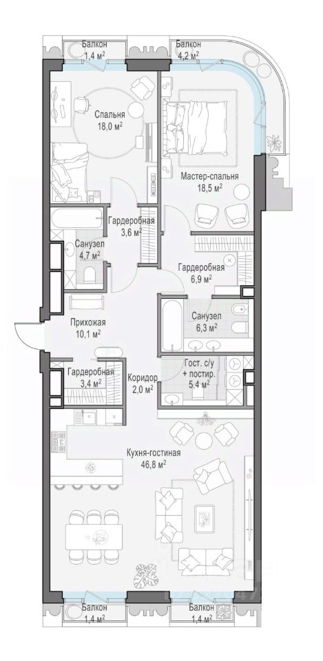 В пешей доступности Римско-католический кафедральный собор. Всего в полутора километрах от квартала находятся Патриаршие пруды - излюбленное место для летних прогулок, воскресных бранчей и романтических ужинов.