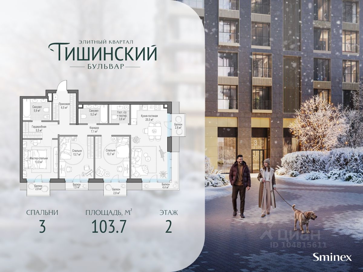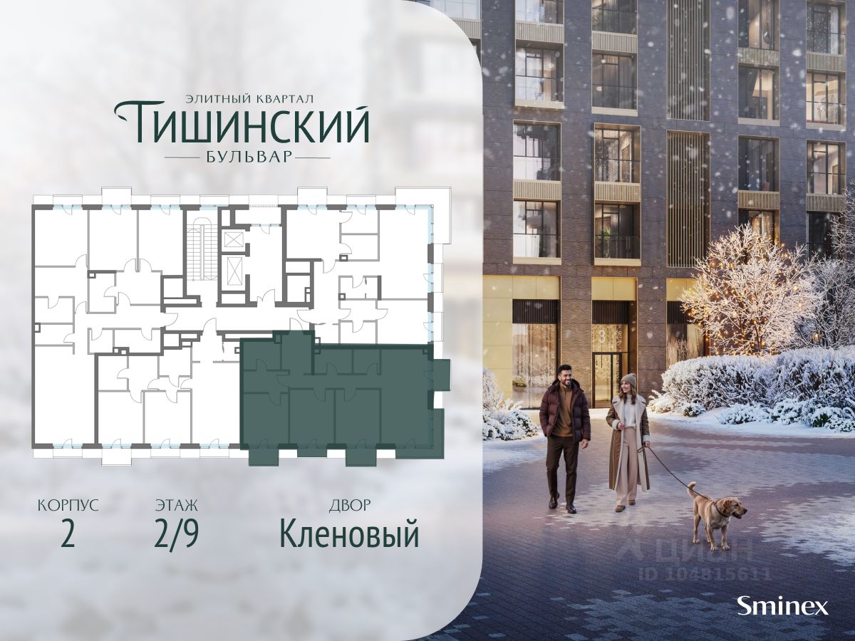 В продаже 3-комнатная квартира квартира в элитном квартале ''Тишинский бульвар''. Общая площадь квартиры - 103.70 кв.м. Этаж 2 из 9. Корпус 8С2.