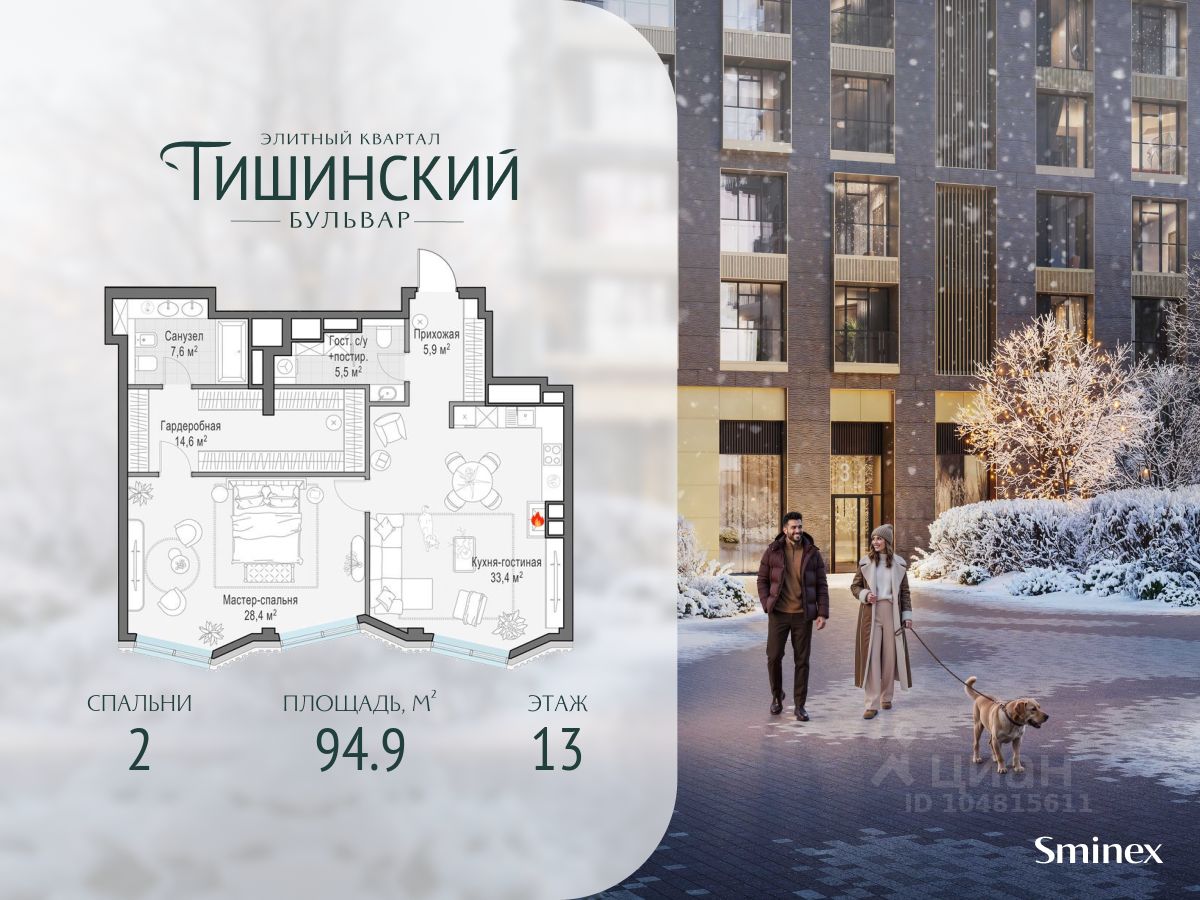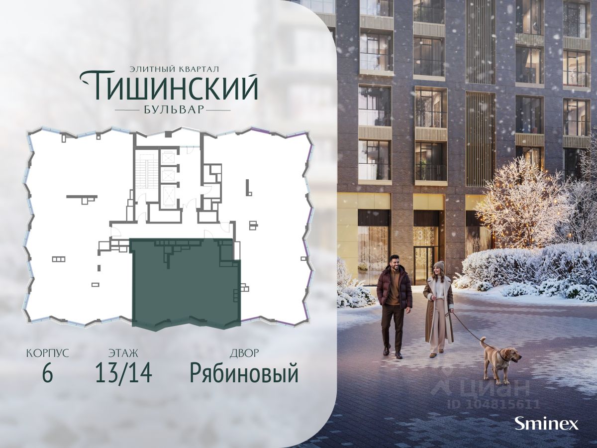 В продаже 2-комнатная квартира квартира в элитном квартале ''Тишинский бульвар''. Общая площадь квартиры - 94.90 кв.м. Этаж 13 из 14. Корпус К6.