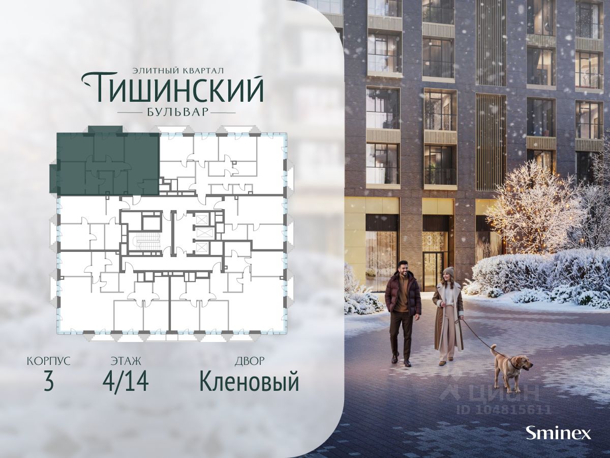 В продаже 3-комнатная квартира квартира в элитном квартале ''Тишинский бульвар''. Общая площадь квартиры - 96.70 кв.м. Этаж 4 из 14. Корпус К3.