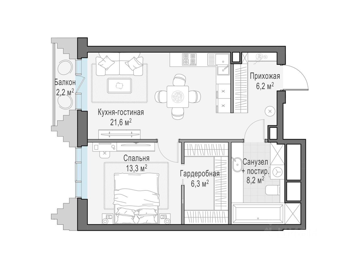 Общая площадь56 м2