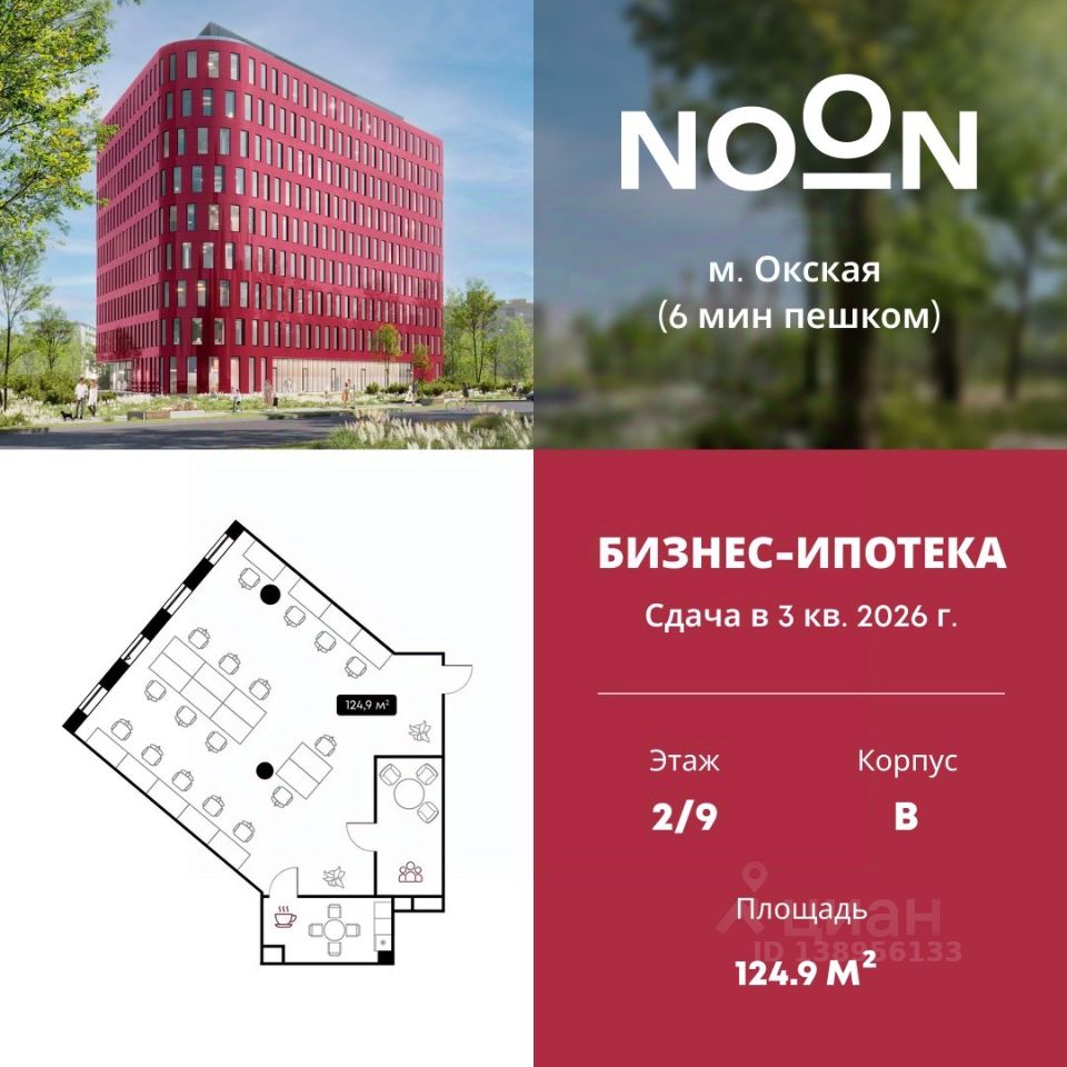 Продается офисное помещение площадью 124.9 м² в бизнес-центре NOON от застройщика Dominanta.