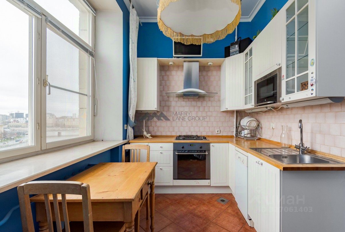Из окон открывается потрясающий вид на гостиницу Украина, МГУ, Москва-Сити, Смоленскую набережную, воду.