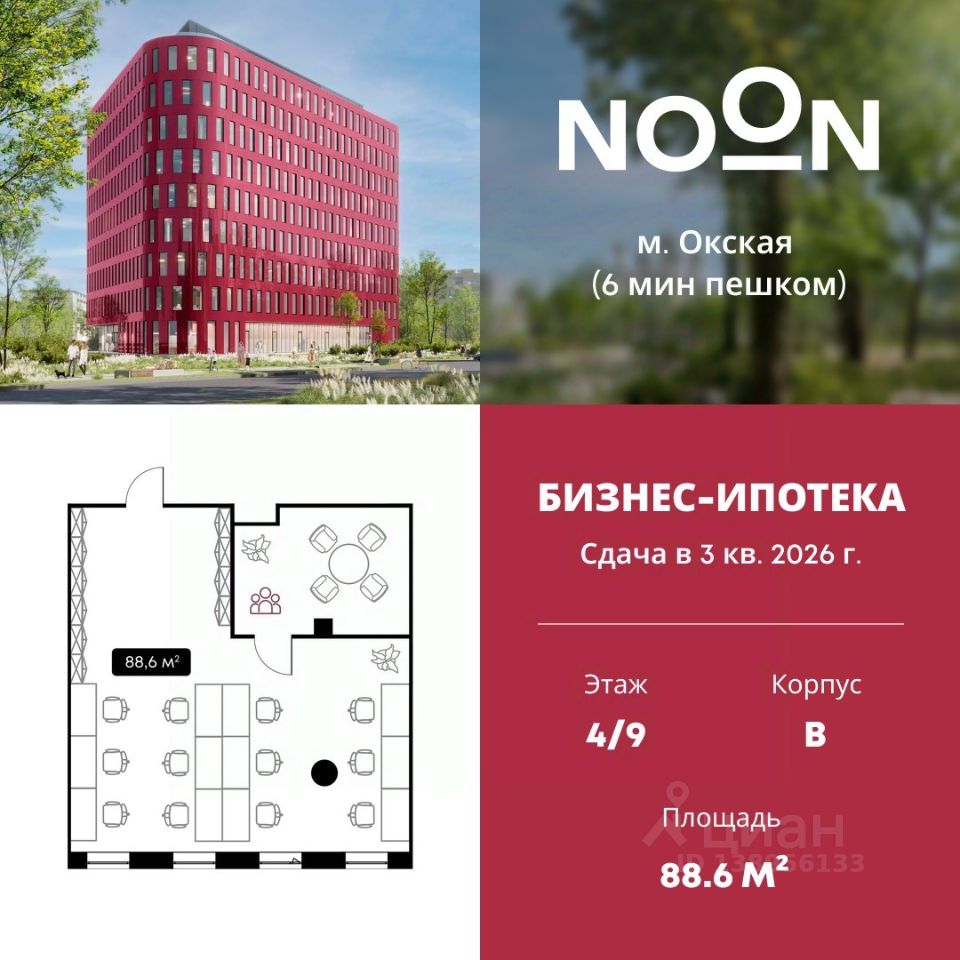Продается офисное помещение площадью 88.6 м² в бизнес-центре NOON от застройщика Dominanta.