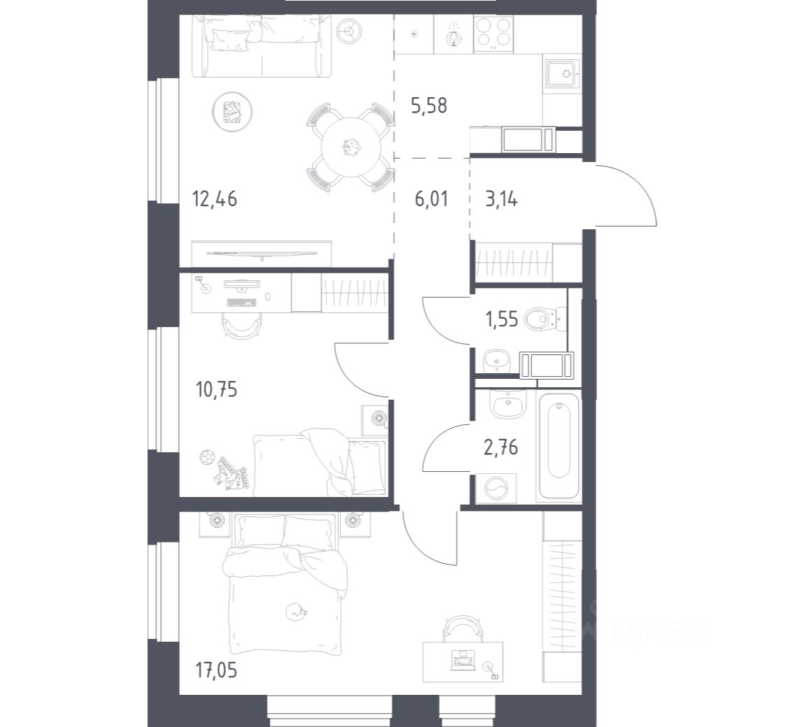 Строим кварталы для жизни с заботой о будущем. Предлагается 2-комнатная квартира комфорт-класса площадью 58,6 кв.м в корпусе 16 на 5-м этаже, в жилом комплексе ''Алхимово''.