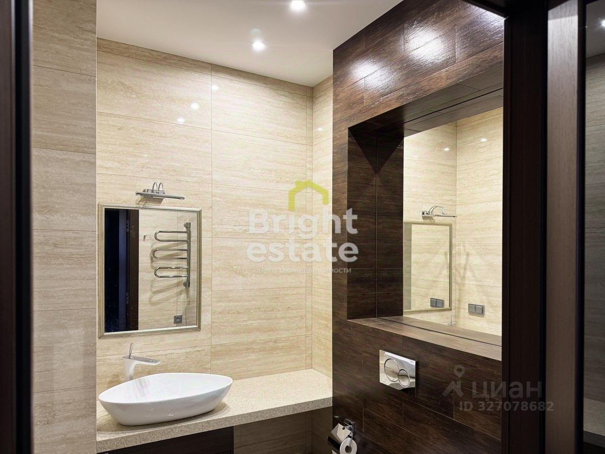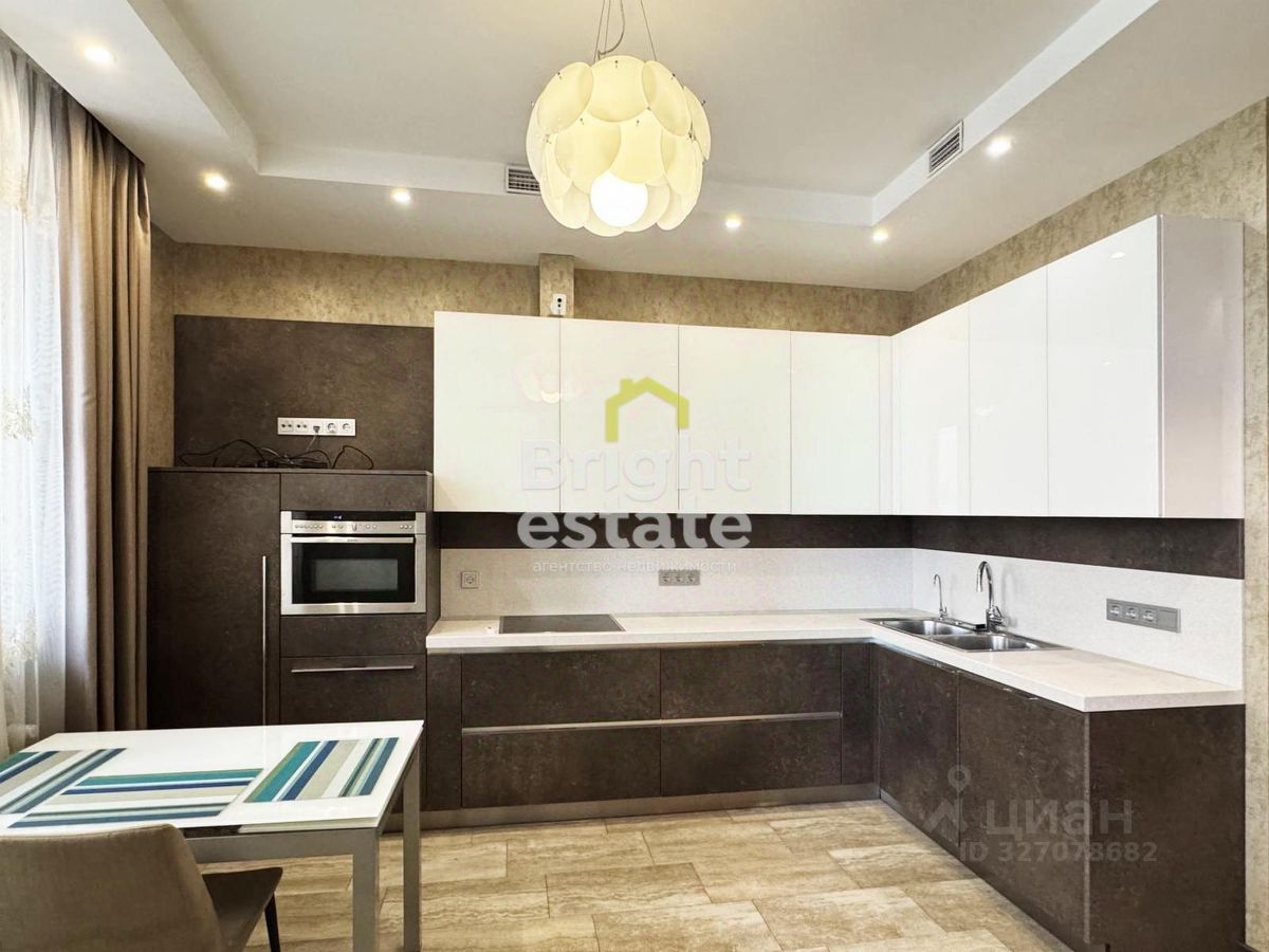 Интерьер выполнен по авторскому дизайн-проекту с использованием натуральных материалов, создающих атмосферу тепла и благородства. Просторная кухня оснащена встроенной мебелью и техникой премиальных брендов NEFF и Liebherr и органично переходит в светлую гостиную — идеальное место для семейных вечеров и приёма гостей. Две изолированные спальни обеспечивают уединение и комфорт, два санузла добавляют удобства, а продуманная система встроенных гардеробных позволяет сохранить ощущение свободного пространства. Две большие лоджии расширяют жилую площадь и наполняют квартиру естественным светом.