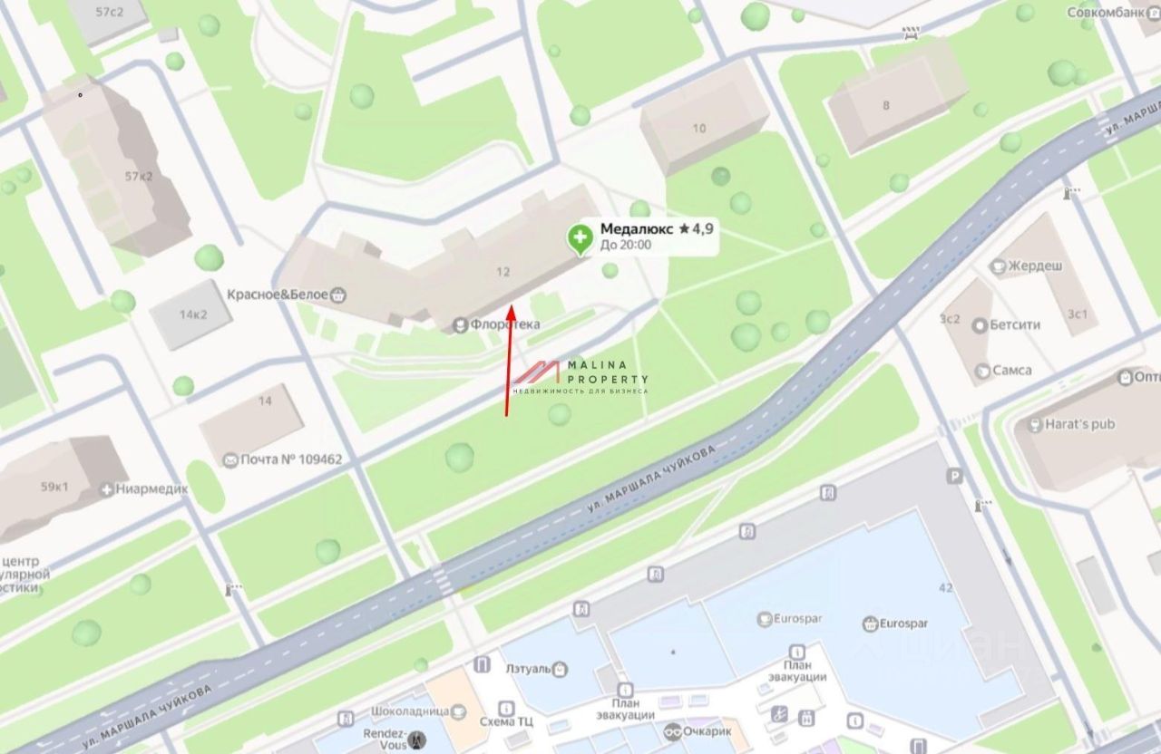 Аренда торгового помещения 204 м2 на ул. Маршала Чуйкова, д. 12 (3 минуты пешком от метро Кузьминки).