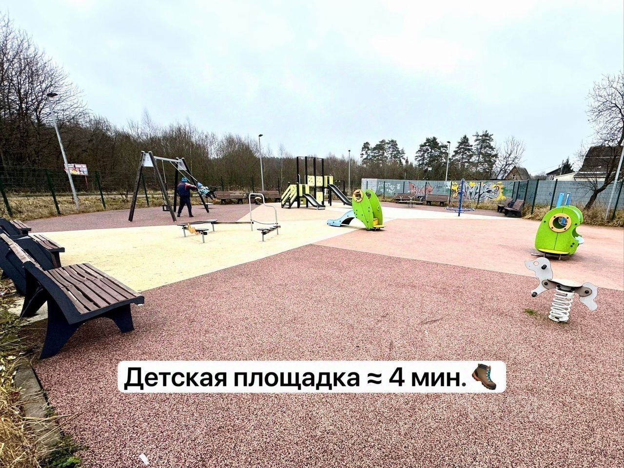 Рядом досуговые зоны и площадки для детей, баскетбольная площадка, ворк-аут площадка и теннисный корт — 4 минуты пешком!