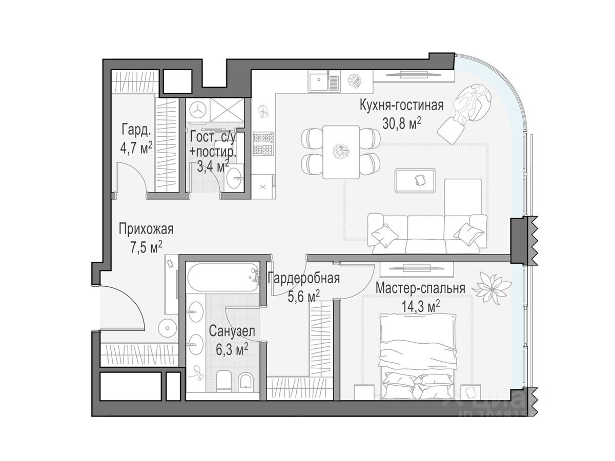 В проекте уникальный выбор квартир с просторными балконами, пентхаусов с террасами, бассейнами и каминами, максимальными видовыми характеристиками, а также роскошных вилл. Всего - 153 квартиры и 101 продуманное планировочное решение. Высота потолков составляет от 3,5 до 8,25 м. В доме предусмотрен 2х-уровневый паркинг на 279 машино-места.