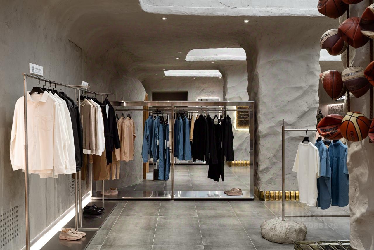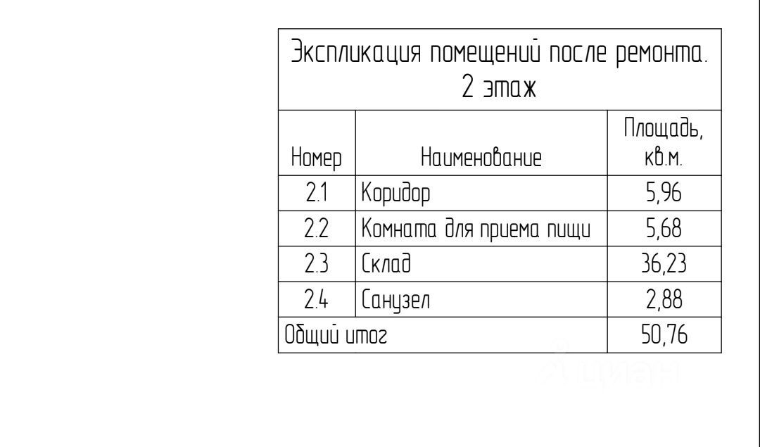 - 1 этаж: Торговый зал, примерочные, склад, подсобное помещение, лестница, 2-й выход. - 2 этаж: Санузел, офис-кухня, основной склад.