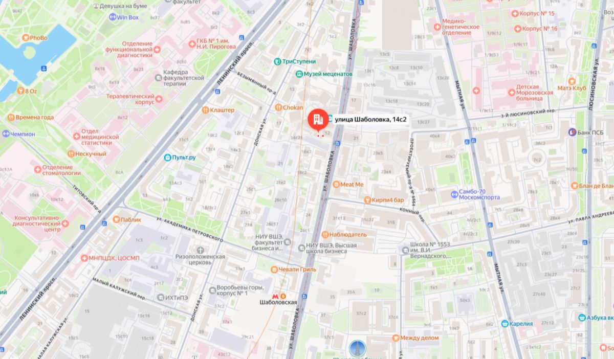 М. Шаболовка, 6 минут пешком.