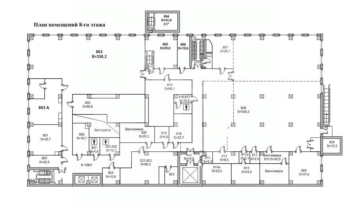 Этот лот состоит из нескольких помещений: 1530 кв. м., 1250 кв. м. и 1575 кв. м.