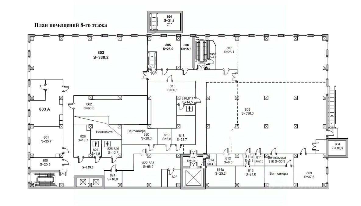 Этот лот состоит из нескольких помещений: 1250 кв. м., 1575 кв. м. и 658 кв. м.