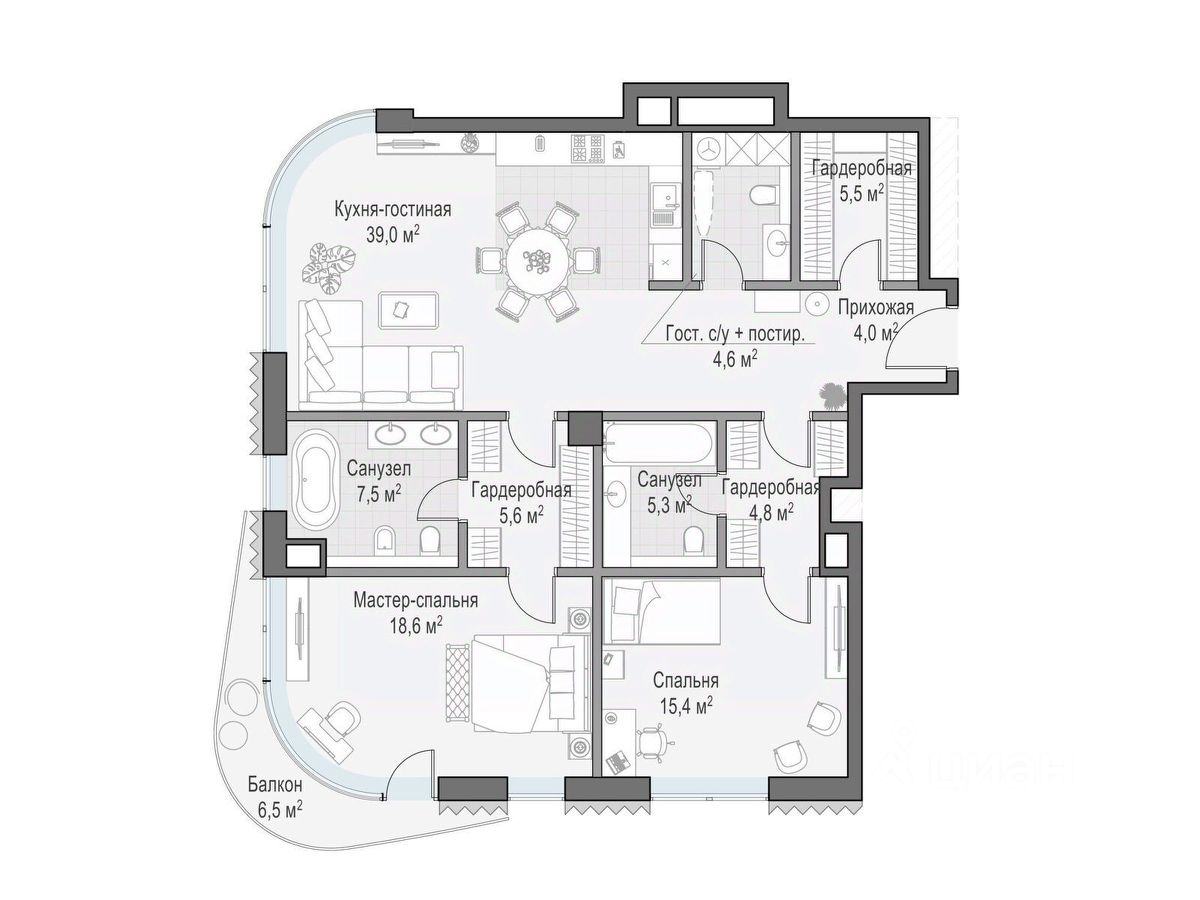 В проекте уникальный выбор квартир с просторными балконами, пентхаусов с террасами, бассейнами и каминами, максимальными видовыми характеристиками, а также роскошных вилл. Всего - 153 квартиры и 101 продуманное планировочное решение. Высота потолков составляет от 3,5 до 8,25 м. В доме предусмотрен 2х-уровневый паркинг на 279 машино-места.
