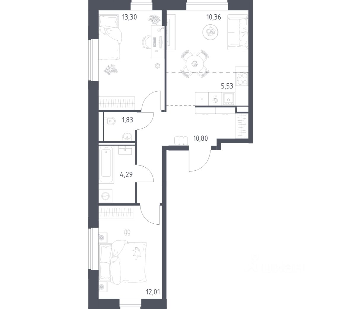 Строим кварталы для жизни с заботой о будущем. Предлагается 2-комнатная квартира комфорт-класса площадью 58,12 кв.м в корпусе 2 на 12-м этаже, в жилом комплексе ''Квартал Домашний''.