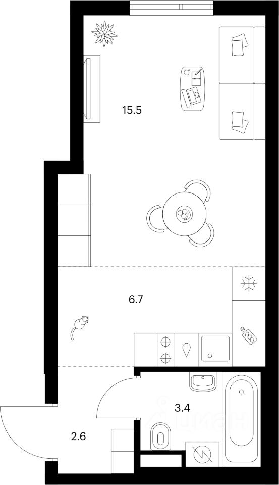 Жилая площадь15,5 м2