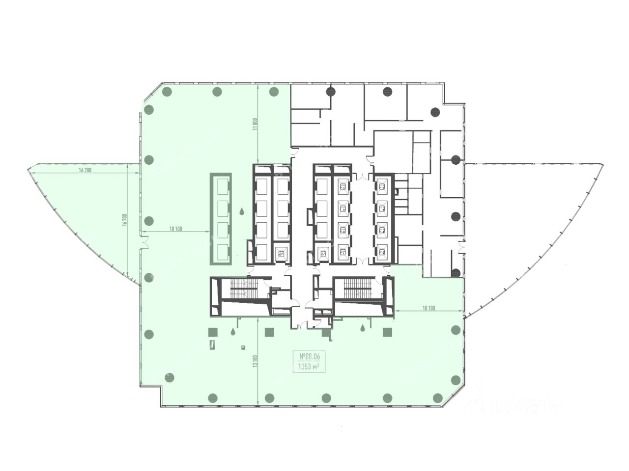 - Размер типового этажа: 1650-1900,
