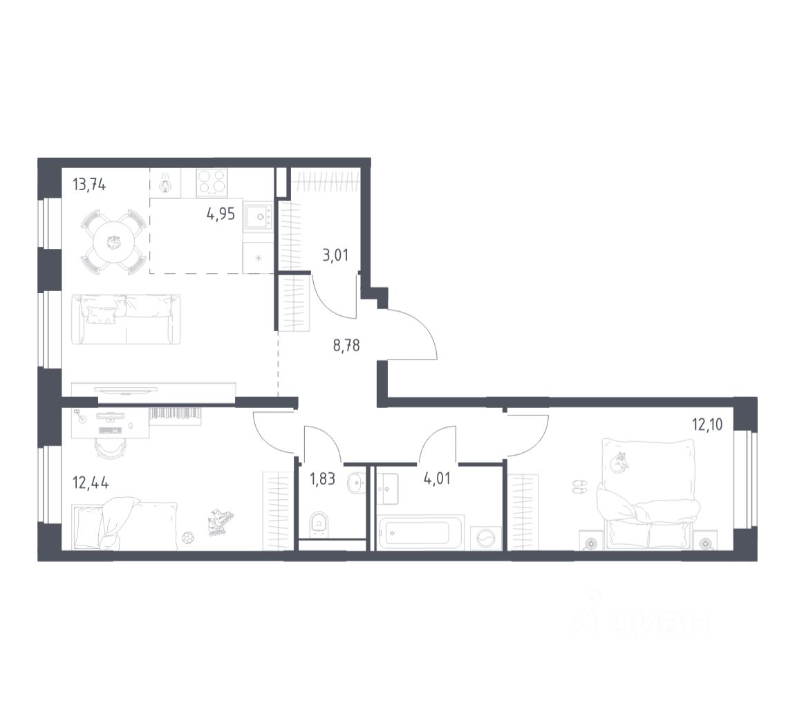 Строим кварталы для жизни с заботой о будущем. Предлагается 2-комнатная квартира комфорт-класса площадью 60,86 кв.м в корпусе 2 на 4-м этаже, в жилом комплексе ''Квартал Домашний''.