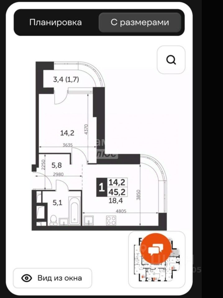 45 кв.м элегантности: Продуманная планировка , где каждый метр работает на ваш комфорт. Увеличенные окна на высоте создают ощущение полёта над городом.