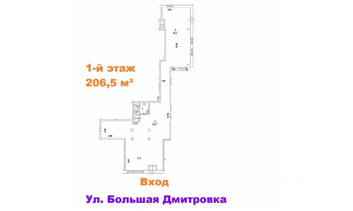 Площадь помещения 206,5 м²