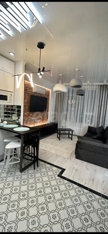 Квартира с дизайнерским ремонтом, за счет стеклянной перегородки расширена зона гостиной с кухней. Полностью укомплектована мебелью, бытовой техникой, посудой, можно сразу жить или сдавать. Потолки 3 метра. Кровать 180х200. посудомоечная, стиральная машины, два кондиционера, диван, кровати, купе, душевая кабина.