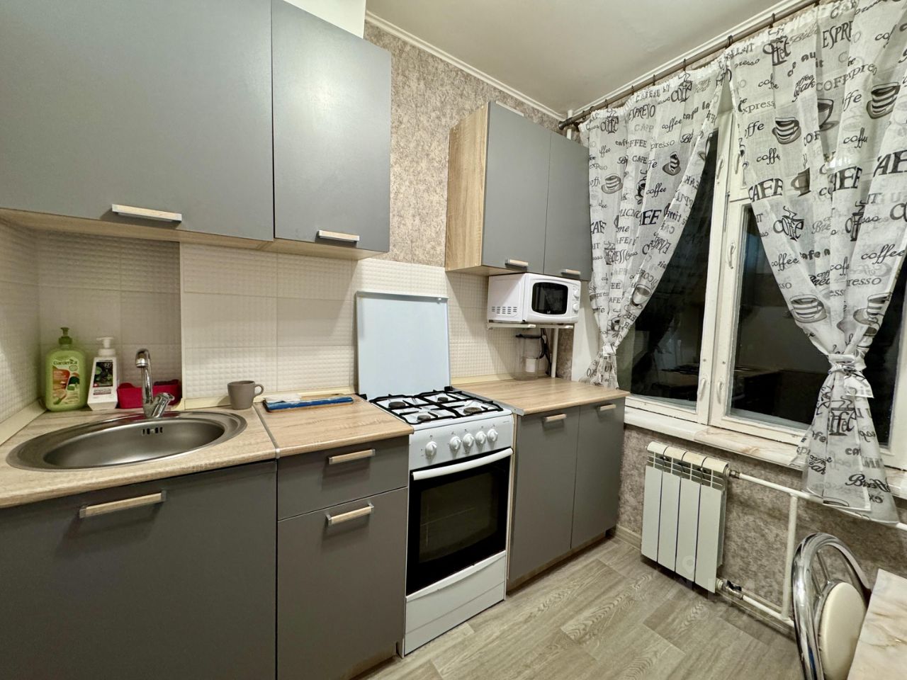 В квартире есть всё необходимое для жизни: бытовая техника, спальные места, вместительные системы хранения — можно заехать и жить без дополнительных вложений.