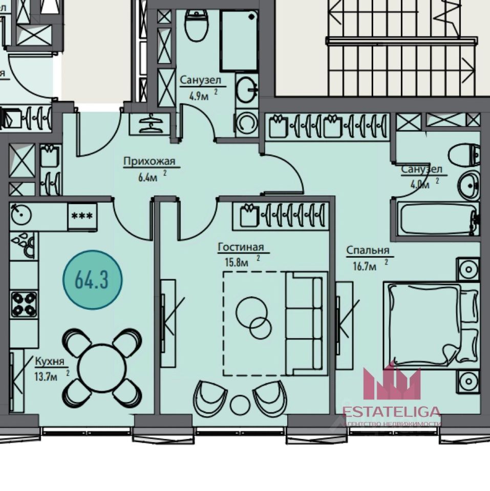 Id 60961. РЕАЛЬНЫЙ ОБЪЕКТ И СТОИМОСТЬ Продается двухкомнатная квартира, общей площадью 65 кв.м в жилом комплексе бизнес класса ''Метрополия''.
