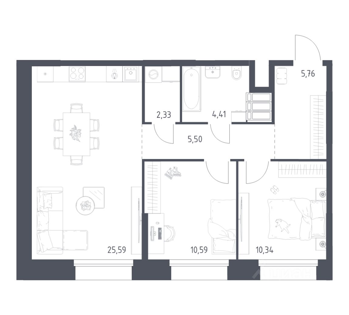 Строим кварталы для жизни с заботой о будущем. Предлагаются 2-комнатные апартаменты бизнес-класса площадью 64,52 кв.м в корпусе 2.2 на 19-м этаже, в жилом комплексе ''Тропарево Парк''.