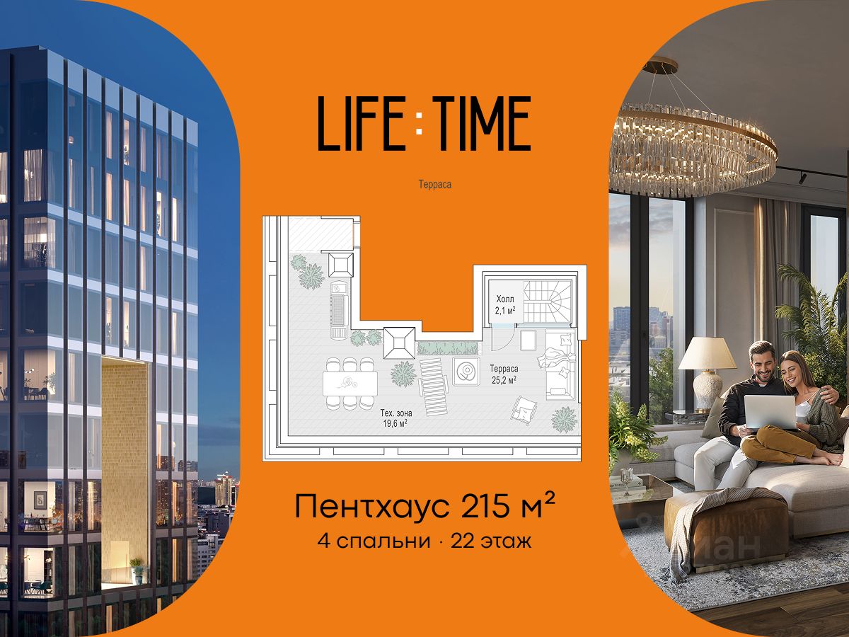 Life Time - роскошный современный квартал на Пресне, в наиболее быстро растущем премиальном районе ЦАО. Его насыщенная инфраструктура и выгодное расположение дарят время для жизни. Вы больше не тратите его на дорогу или ожидание, при этом ни в чём себе не отказывая. На территории предусмотрено всё для комфортной жизни: • двор-парк площадью 1,8 гектара с прудом и фонтанами, • Clubhouse - инфраструктурный центр в отдельном здании с исчерпывающими возможностями для спорта, отдыха и досуга только для жителей, • спортивная инфраструктура на улице и в помещении, в том числе бассейн длиной 25 метров, хот-таб, хаммам, сауна, бьюти-зона, • клубная гостиная с террасой, • всё для развития и досуга детей любого возраста, в том числе детский сад и школа. Life Time находится в центре сложившегося премиального района, в окружении многочисленных парков. Удобная транспортная доступность и прямой выезд на Звенигородское шоссе позволяют без проблем добраться до Садового кольца и Москва-Сити. Архитектурный стиль квартала - роскошный минимализм. Дома десятилетиями будут выглядеть современно. В Life Time представлен широкий выбор как квартир, так и особых форматов: двухэтажные пентхаусы с каминами и террасами, скай-виллы.