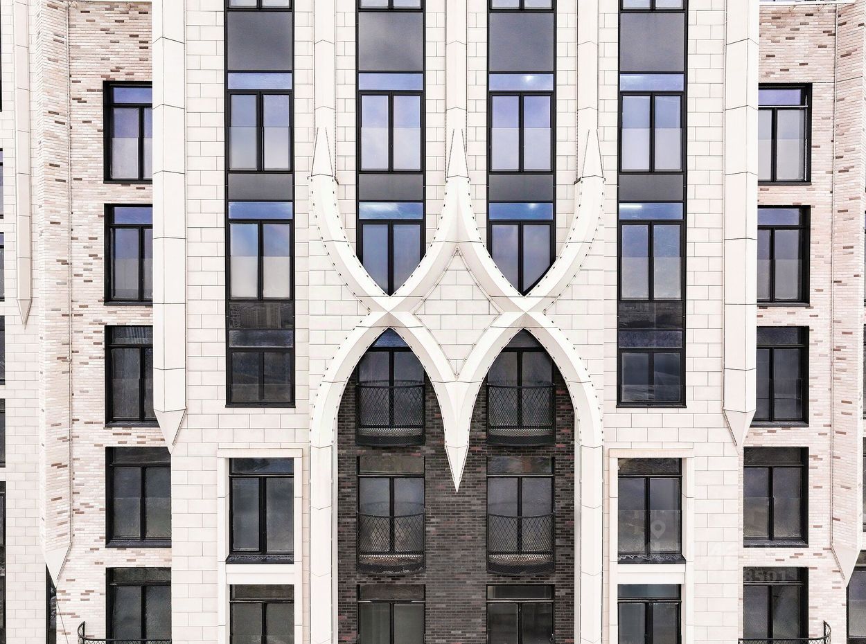 Архитектура проекта - современное прочтение торжественного и изящного стиля ар-деко, который, как и сталинский ампир, сформировался в результате развития идей чикагской школы. В доме 6 секций, 115 вариантов продуманных планировочных решений - от уютных студий до просторных пентхаусов с дровяным камином.