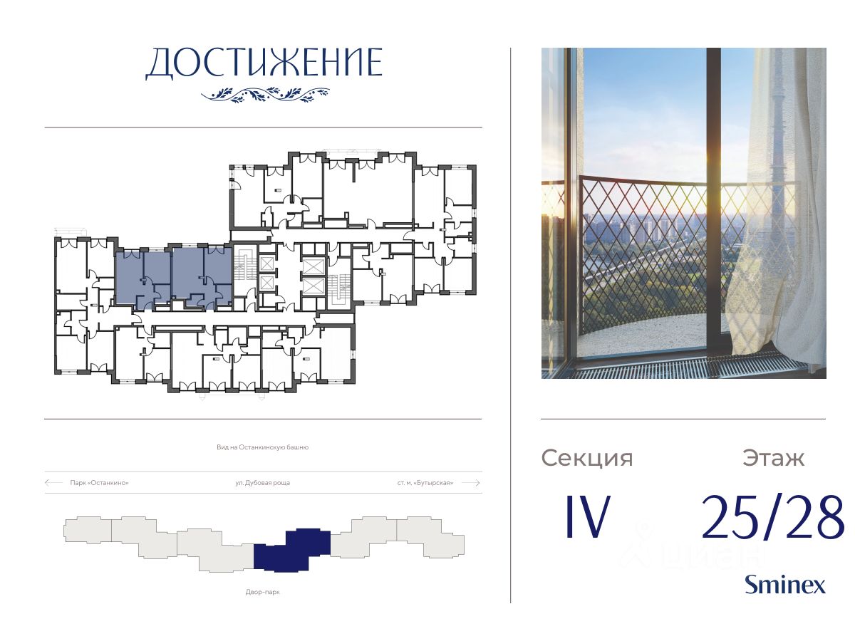''Достижение'' - единственный дом с торжественной архитектурой в окружении бескрайних парков на любой вкус: парк ''Дубовая роща'', обновленный классический парк ''Останкино'', самый известный парк России ВДНХ и крупнейший в Европе ботанический сад.