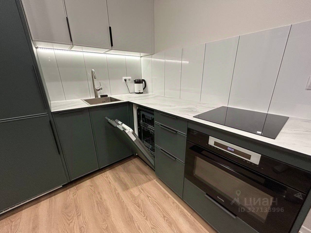 По квартире обустройство: стиралка с сушкой, посудомойка, духовка с функцией микроволновки, встроенный холодильник, плита индукция. Вся мебель и техника новые, никто не жил.
