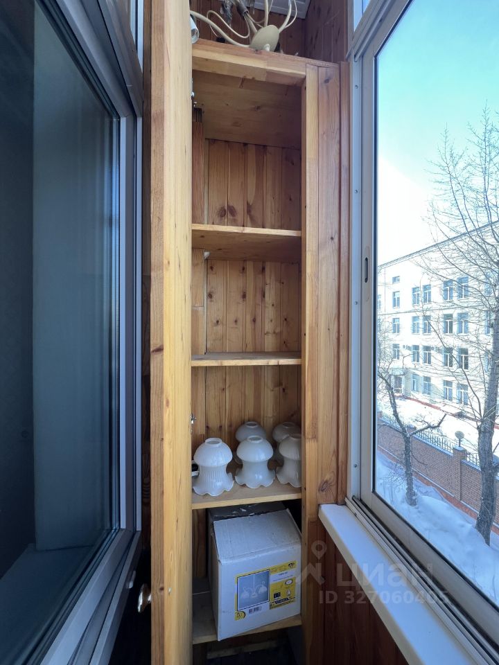В комнате глубокий шкаф купе и телевизор. Спального места нет. Выход на небольшой балкон из комнаты.