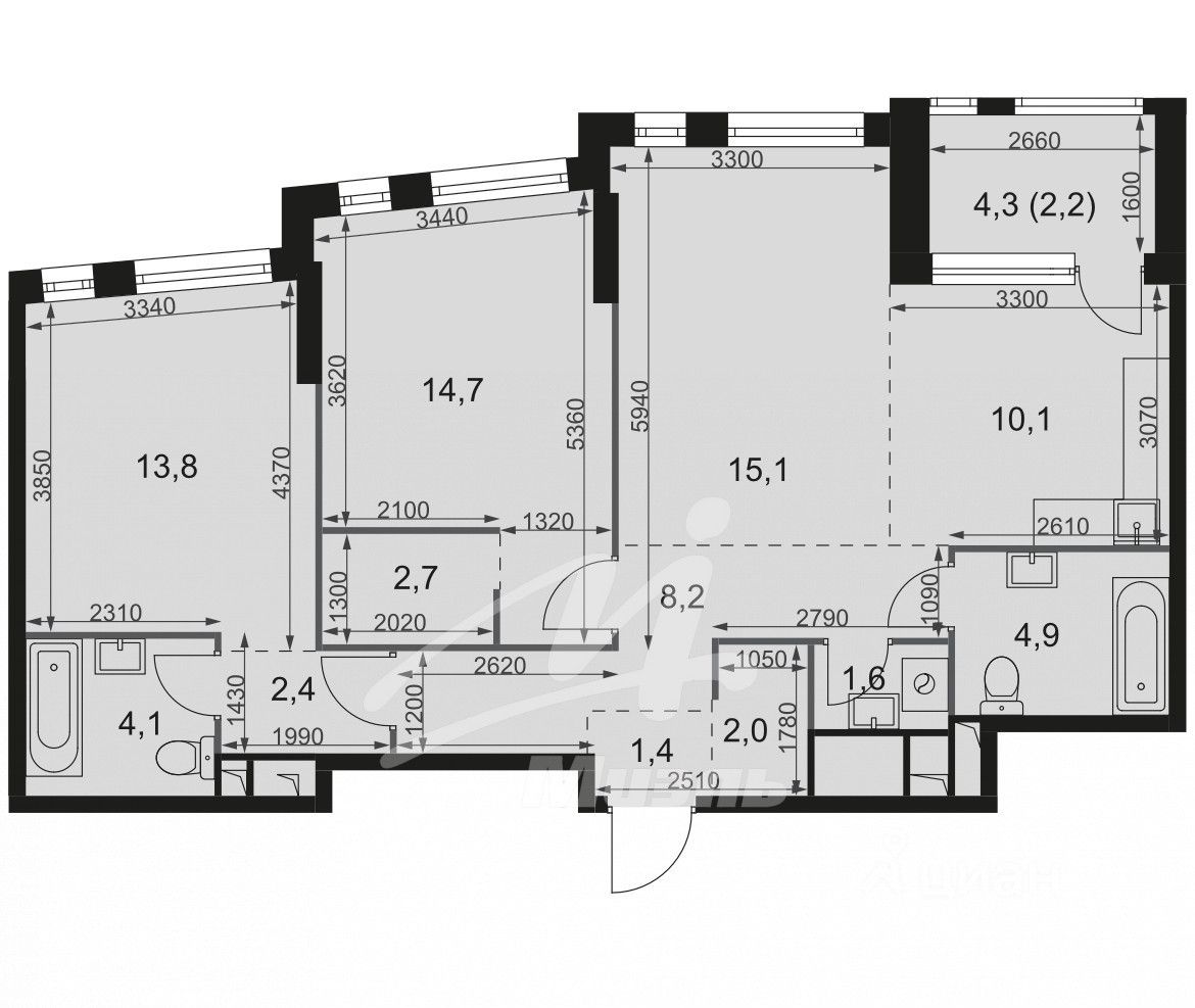 Просторная квартира с предчистовой отделкой White box - основой для вашего дизайн-проекта.
