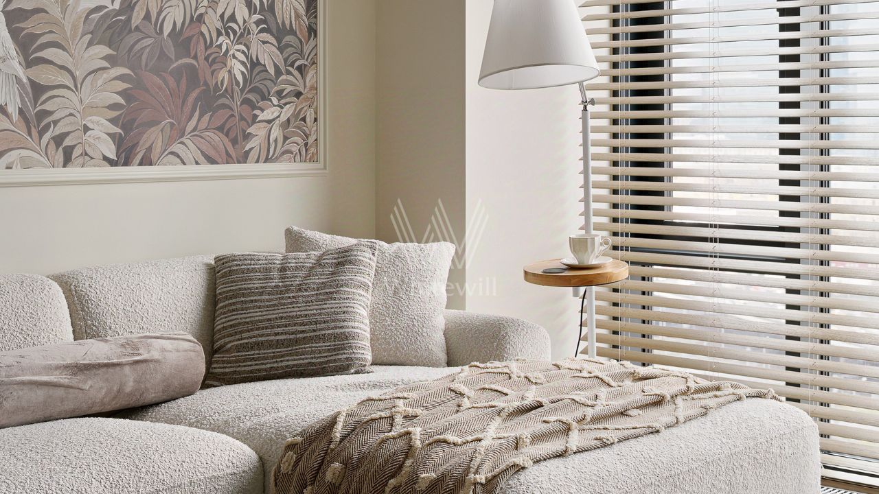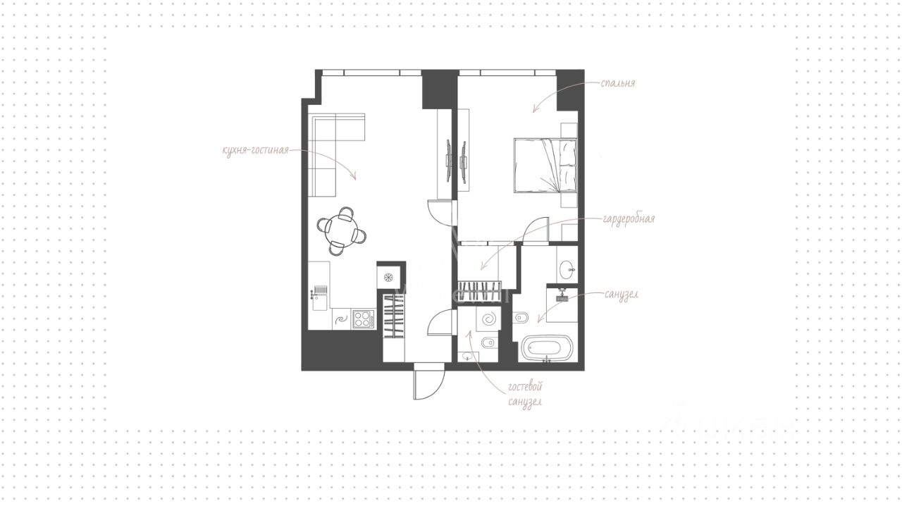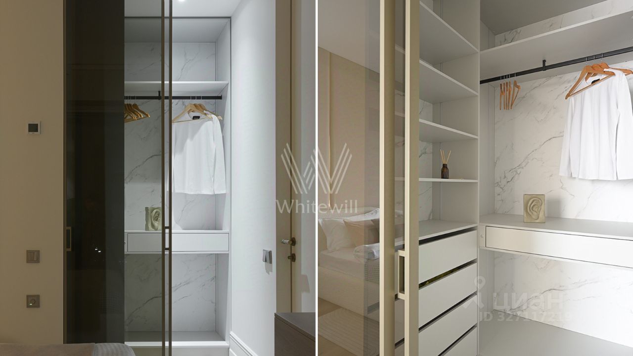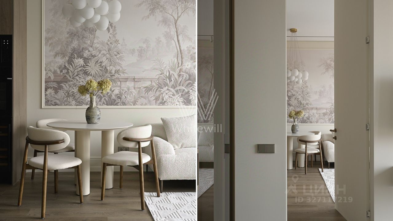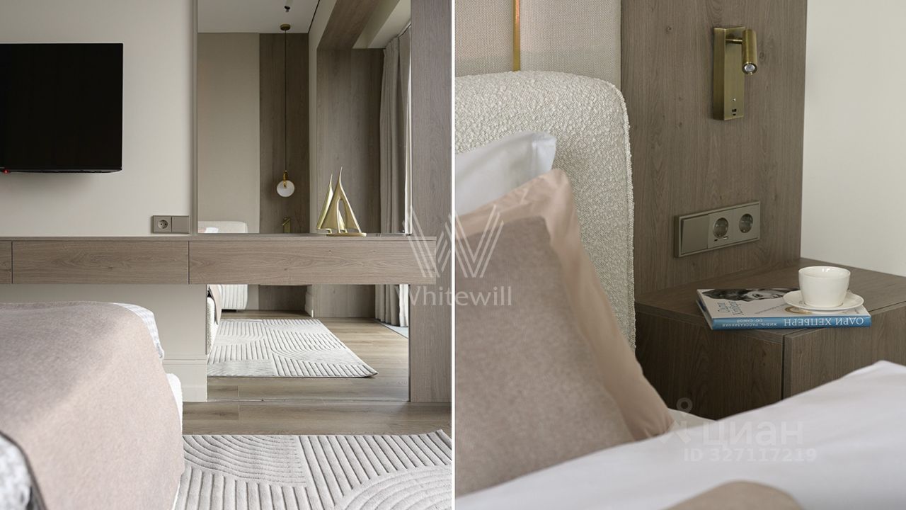 Видовая квартира с 1 спальней общей площадью 49 м² в комплексе премиум-класса Hide в Раменках. Интерьер оформлен приятных светло-бежевых тонах. Планировка: кухня-гостиная с обеденной зоной, спальня со своей ванной комнатой и гардеробной, гостевой санузел, прихожая с гардеробом.