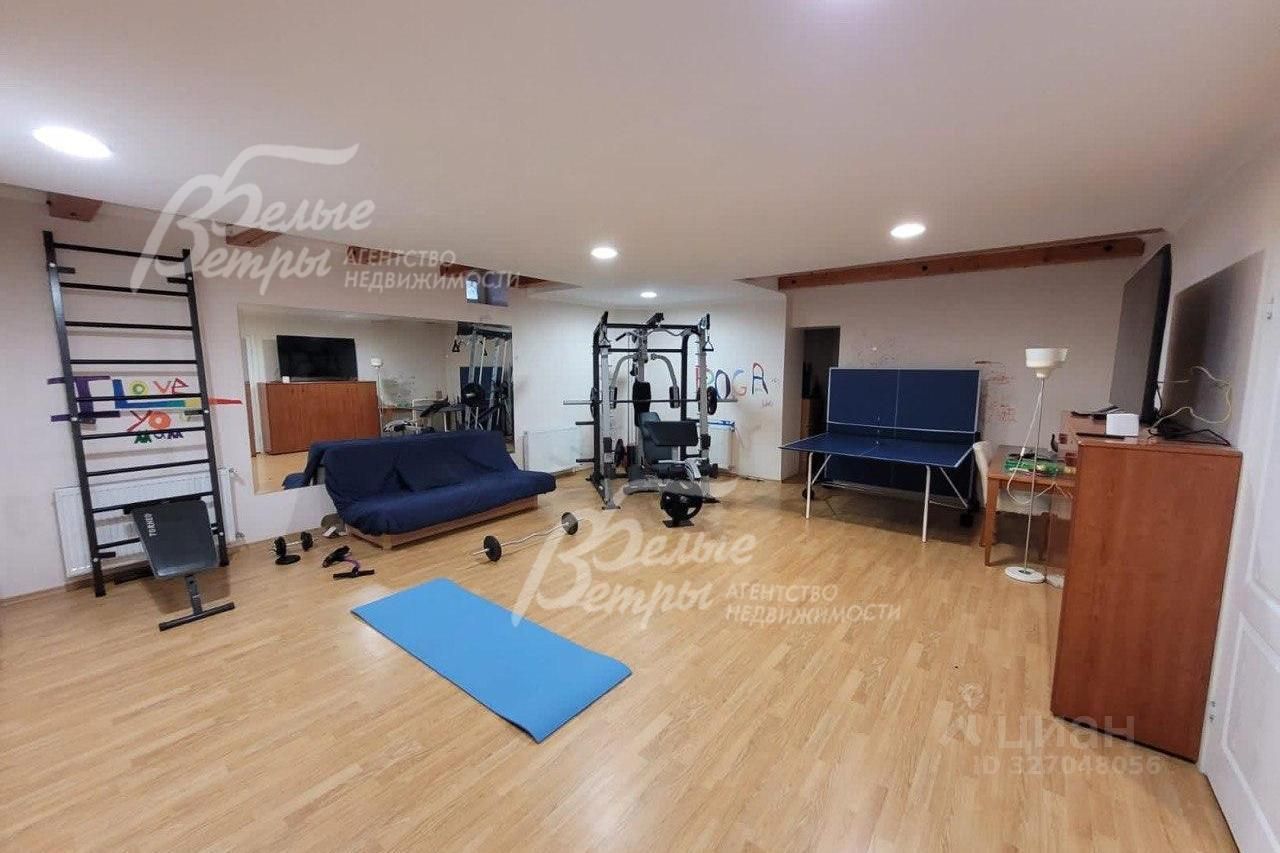 Мебель, оборудование: установлен современный кухонный гарнитур, фасады - лакированный МДФ сливочного цвета, с алюминиевыми молдингами и обрамлением концевых элементов, со всей необходимой техникой: электрический духовой шкаф Siemens, газовая варочная панель Bosch, вытяжка Siemens, посудомоечная машина Siemens, двухкамерный холодильник, а также двухкамерный холодильник LG, микроволновая печь Indesit, кухонный набор (тостер, чайник), система очистки воды BORK (с функцией нагрева и охлаждения воды). В гостиной и тренажерном зале - большой ТВ. В постирочной - стиральная машинка Bosch, утюг с парогенератором, пылесос. В зоне столовой - большой обеденный стол на 8 персон с кожаными креслами. В гостиной - модульный кожаный диван, журнальный столик. В Главной спальне - кровать King-Size c мягким изголовьем, тумбами, мягкий диван, шкаф-купе, рабочая зона. Гардеробная оборудована системой для хранения вещей. В других спальнях - минимализм, кровати с тумбами. На мансардном этаже организована рабочая зона: стол, кресло, стеллаж, диван. На цокольном этаже - шкафы для одежды, тренажеры, теннисный стол. Наличие карнизов и штор, а также занавески и римские шторы, потолочные дизайнерские люстры ( в том числе эффектная длинная люстра в гостиной), бра, светильники. Стены украшают картины. На подоконниках - живые цветы..
