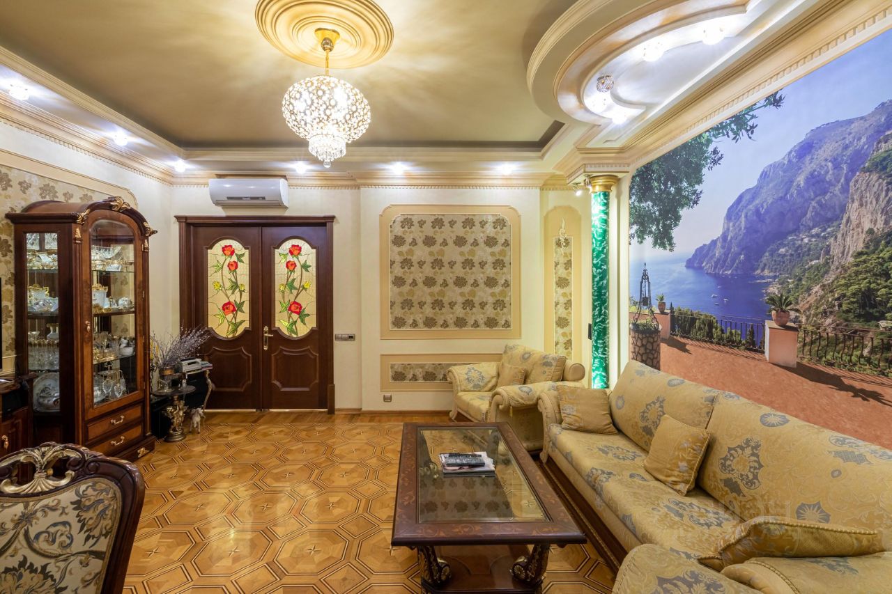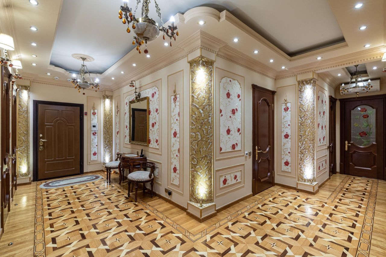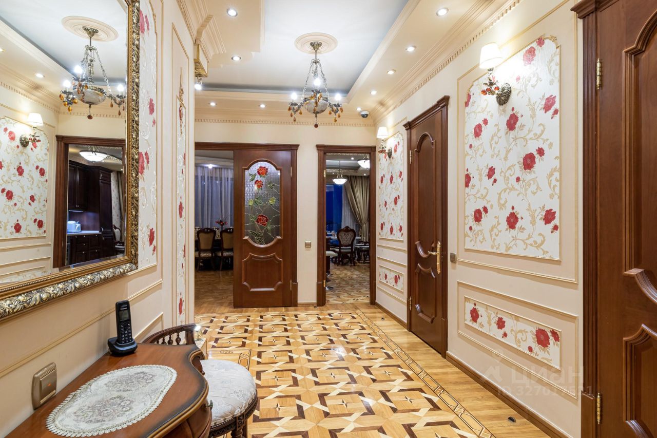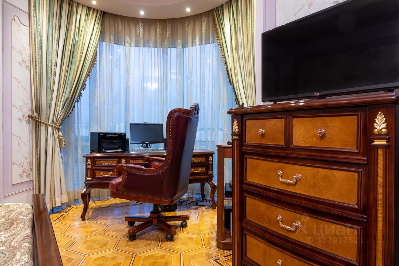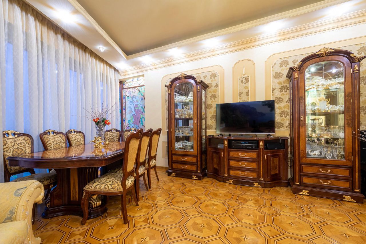 амы и Господа, вашему вниманию представлена в продажу эксклюзивная трехкомнатная квартира с премиальной классической отделкой в ЖК Миракс Парк. Квартира общей площадью 130 кв.м., расположенная на 25 этаже с панорамными видами на Тропаревский лесопарк, двор и пруд с лесным массивом. Планировка квартиры: кухня с обеденной зоной, отдельно просторная гостиная, 2 санузла, постирочная, 2 гардеробные и 2 спальни. Ремонт-класса люкс поражает изысканной роскошью отделки - лепка карнизов, висячие потолки, арки, обои тканевые заключенные в двойные рамки из материала бук с инкрустацией с угловыми элементами, бордюрами и молдингами- колоны под мрамор зеленого цвета с беловатыми жилками с золотыми лотосами , в том числе в прихожей, художественный паркет мозайка из ценных пород дерева ( дуб, красное дерево- Мербау, орех, клен, груша) от 240 347 узорных элементов на 1 м2 с разными узорами в разных комнатах, включая кухню и прихожую, в стиле Леонардо да Винчи и зимний дворец Георгиевского зала. Два сан/узла большой и гостевой, элитные дорогие керамические плитки с тремя рядами бордюров, с подогревом пола произ-во Канада, автоматическая вентиляция, все трубы REHAU, смесители, полотенцесушители, угольники золото 24 карат фирмы Migliore -Италия, аксессуары так же из золото 24 карат . Сантехника - цельная керамика произ-во Италия Cezares King Palace , сиденье унитаза из цельного ореха , душевая кабина с оздоровительным массажем производство Финляндия, мебель в ванной - имеет мраморную столешницу с золотыми ручками производство Италии. Система Аква-стоп автоматическое выключение воды, в случае утечки. Кондиционеры ''Mitsubishi''. Кухня- итальянская мебель, массив ореха. Техника Bosch. Стиральная и сушильная машина Miele. Люстры - бронза знаменитой фирмы Бохорама- Испания. Домашний кинотеатр YAMAНA- c пятью колонами, материал орех. Мебель в столовой производство Италия. Материал массив черешня с золотыми инкрустациями (стол овальной формы складная , стулья, прилавок, две витрины с подсветкой). Мягкая мебель - производство Испания Taymoble - диван и два кресла, стол массив ореха с фигурными ножками, с золотыми инкрустациями. Мебель спальни фабрика производство Италия. Материал массив ореха. Размеры кровати 2х2,2м, по бокам тумбочки прикроватные, комод и 4-ти дверный шкаф. Жилой комплекс Миракс Парк вне всяких сомнений можно назвать одним из самых ярких и красивых проектов класса премиум. Располагается он на западе Москвы в Тропарево-Никулино - тихом районе с прекрасной экологической обстановкой и развитой городской средой. Двухуровневый подземный паркинг. Имеется отдельно в продажу машиноместо. Звоните Дамы и Господа, с радостью ответим на все вопросы и организуем оперативный показ! С уважением, Екатерина.